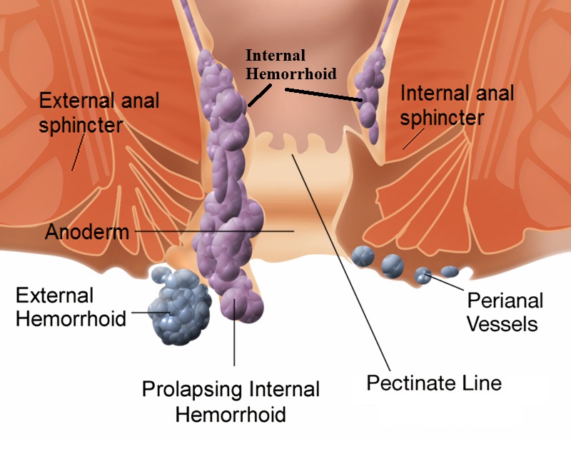 - Hemorrhoids originating from above the Pectinate Line (Shown in the Figure) are called Internal Piles or Hemorrhoids